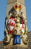 Die Restaurierung der Distanzsäule von Elsterswerda ist abgeschlossen. Es wurden: die Säule insgesamt gereinigt, die Wappen und Inschriften farbig neu ausgelegt, die Vergoldungen überarbeitet, der Sockel erneuert und verschiedene Schadstellen am Postament ausgebessert. Die Arbeiten hat die ortsansässige Firma Anlauff Naturstein GmbH ausgeführt. (Fotos: Olaf Grell, Ladeburg) |